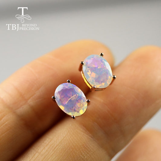 2ct Natural ethiopian opal earring oval 6*8mm gemstone simple design earring 925 sterling silver jewelry for girls & lady