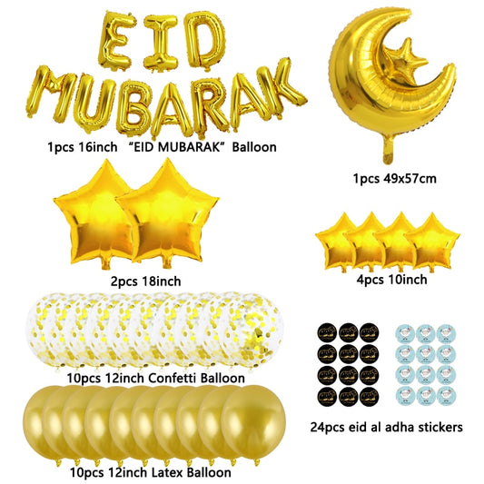 39pcs/Set 16inch Eid Mubarak Decor Ballon Ramadan Mubarak Decoration Eid Al Adha Stickers Decoration Aid Moubarak 2022 Balloon