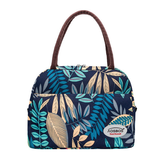 Aosbos Canvas Portable Cooler Lunch Bag Thermal Insulated Multifunction Food Bags Food Picnic Lunch Box Bag for Men Women Kids