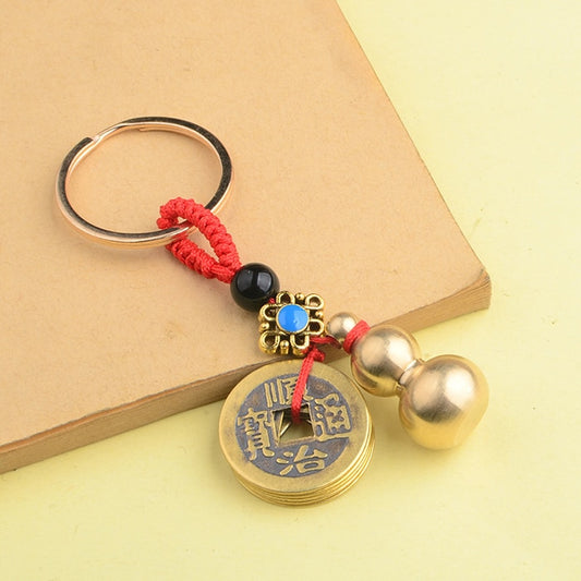 Antique Keychain Charm Gourd Five Emperors Wealth Coin Lucky Chinese Feng Shui Pendant Jewelry
