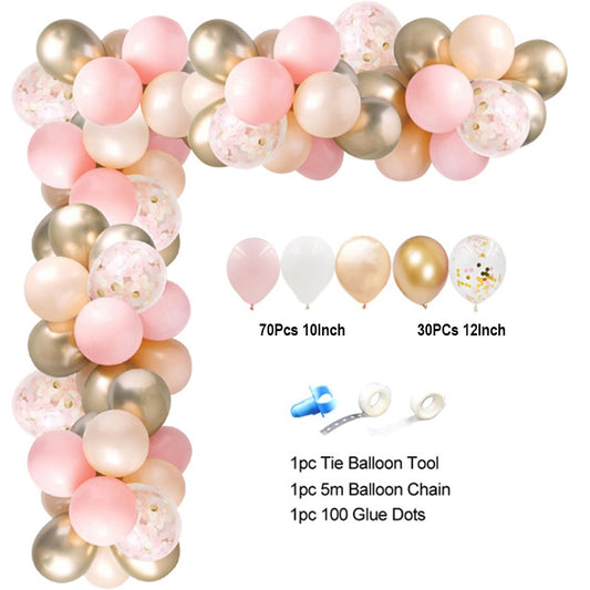Baby Girls First 1st Birthday Decoration Pink Balloon Garland Tableware Set For Baby Shower Kids Gender Reveal Party Supplies