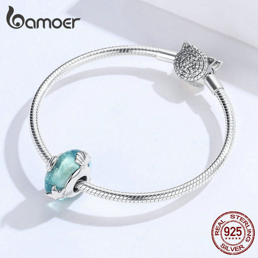 bamoer Light Blue Murano Glass Beads for Women Jewelry Making Sterling Silver Starfish Charm fit European Charm Bracelet SCC1257