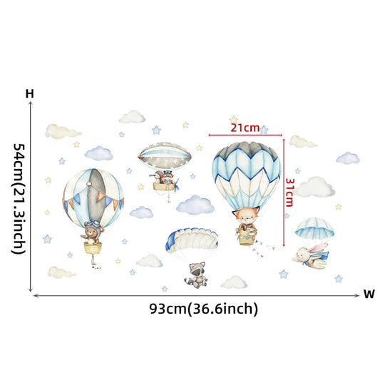 Cartoon Hot Air Balloon Wall Stickers Animals Kids room Baby Nursery Room Decoration Wall Decals Eco-friendly Art Vinyl Murals