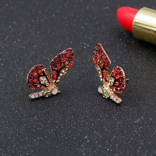 Color Butterfly Wing Earrings 925 Silver Needle Inlaid Rhinestone Personality Earrings Girl Student Fashion Earrings Jewelry