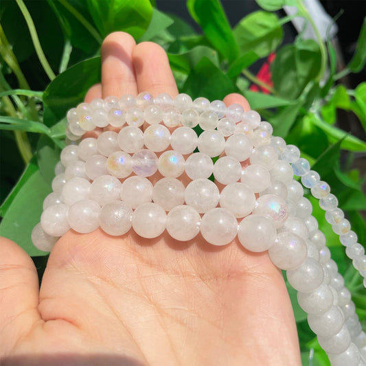 Dyed Clear Moonstone Beads Smooth Round Loose Spacer Beads for Jewelry Making Needlework Diy Charms Bracelet Accessories 15''