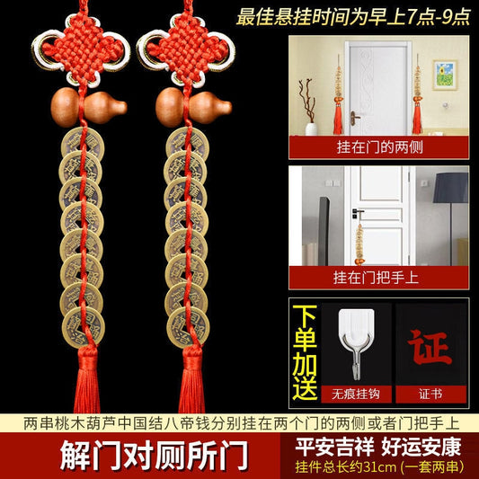 Five Emperors Money Authentic Gourd Pendant Zhaocai Town House Copper Coin Resolve Door-to-door Feng Shui Talisman Amulet