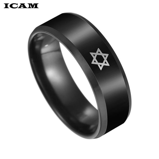 ICAM Black Star of David Ring Men Religious Judaism Israel Jewish Jewelry Men Ring Stainless Steel Obsidian David Star Rings