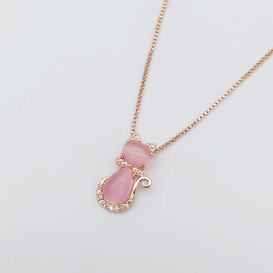 HuiSept Fashion 925 Silver Jewelry Necklace Cat Shape Rose Quartz Zircon Gemstone Pendant for Women Wedding Ornaments Wholesale