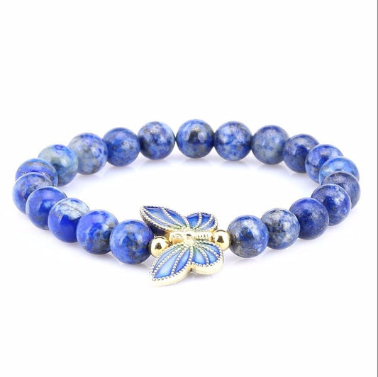 Lapis Natural Stone 8mm Bead Bracelet Butterfly Women Stretch Elastic Bracelet