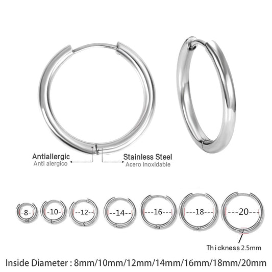LUXUSTEEL 1Pairs/2Pcs Small Hoop Earrings Women Men Silver Color Stainles Steel Round Circle Pendientes Mujer 2023 Anti-allergy