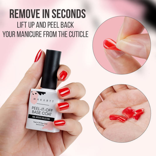Makartt Peelable Base Coat Latex Nail Polish Barrier 2 in 1 15ML Peel Off Gel Base Coat Liquid Latex Clear Gel Nail Polish Ready