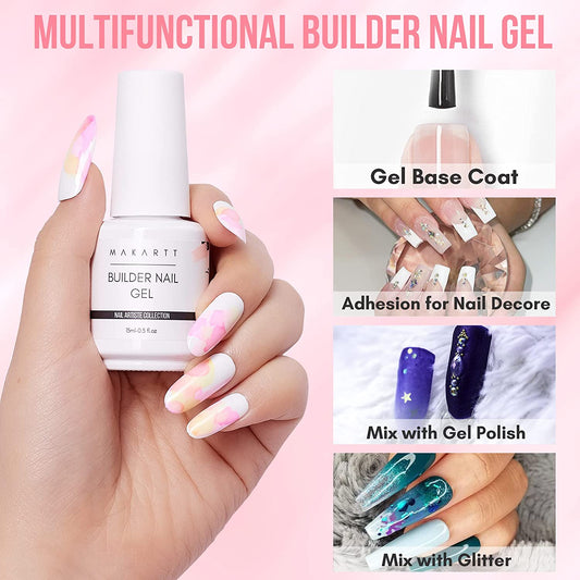Makartt Builder Nail Gel 15ml 5 in 1 Multifunctional Clear Gel Nail Polish Base Coat Nail Strengthener Gel Nail Extension