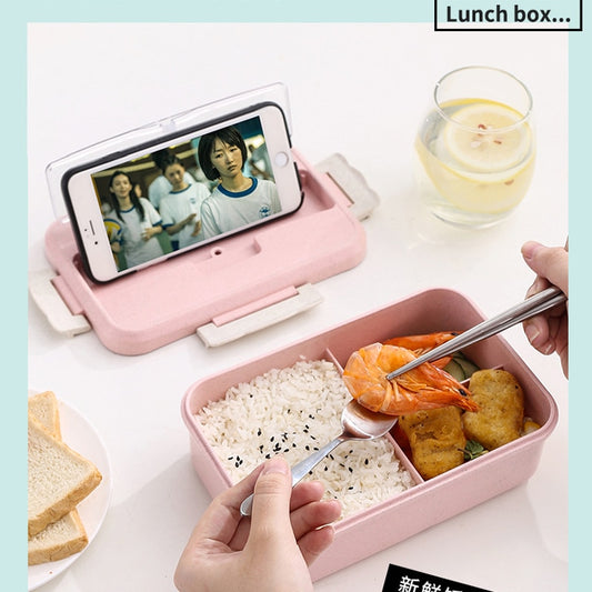 Microwave Lunch Box with Spoon Chopsticks Wheat Straw Dinnerware Food Storage Container Children Kids School Office Bento Box