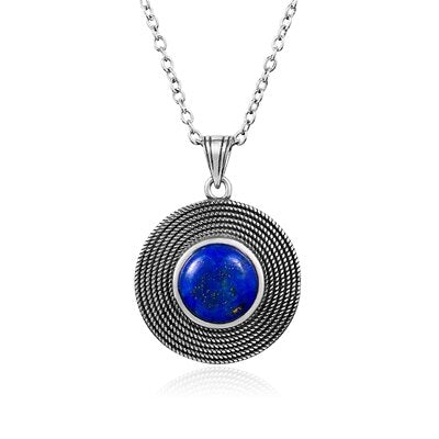 Naisya Vintage Silver Necklace Lapis Lazuli Natural Stone for Women Daily Wear Gift