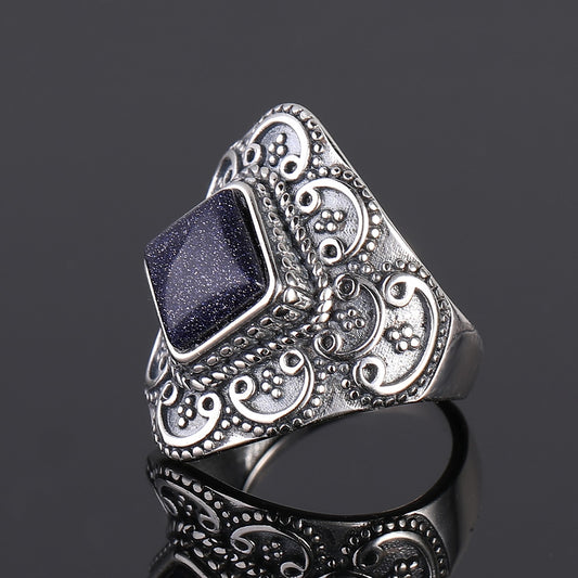 Nasia Rings Vintage Blue Sandstone Gemstone Rings for Women Wedding Bands Anniversary Gift Fashion Jewelry
