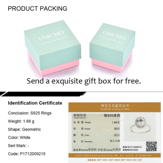 UMCHO 925 Sterling Silver Ring Oval Classic Pink Morganite Rings For Women Engagement Gemstone Wedding Band Fine Jewelry Gift