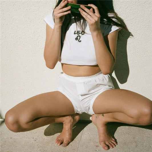 Y2K Baby T-shirt Slim Zodiac Sign Fitted Cropped Ribbed T-shirt crop top Cute Kawaii Tee Sexy Cap Sleeve Summer fairy grungeGiá thông thường Từ $21.04 CADGiá thông thườngĐơn giá / trên-
