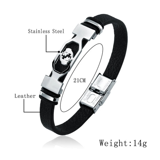 Stainless Steel 12 Constellation Bracelets Zodiac Black Leather Couple Bracelet for Men and Women Jewelry Pulseras Hombre