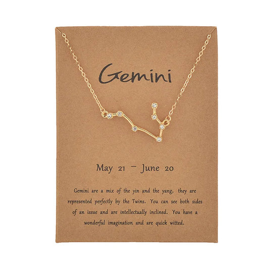 Cardboard Star Zodiac Sign 12 Constellation Necklaces Crystal Charm Chain Choker Necklace for Women Birthday Jewelry Gift