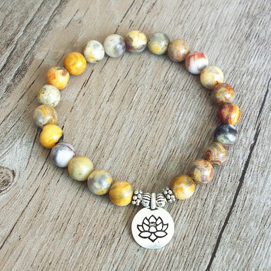 DIY Handmade Jewelry Natural Stone Beaded Bracelet Yoga Chakra Lotus Mala Bracelet Women Men Strand Charm Bracelet