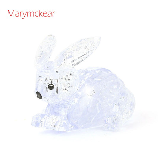 Cute 3D Crystal Puzzle Rabit Pink&Transparent Model Rabits Toy 3D Jigsaw Puzzles Educational Toys for Kids Birthday Gifts