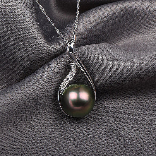 Fashion Women Necklace 925 Silver Jewelry with Black Pearl Zircon Gemstone Pendant Accessories for Wedding Engagement Party Gift