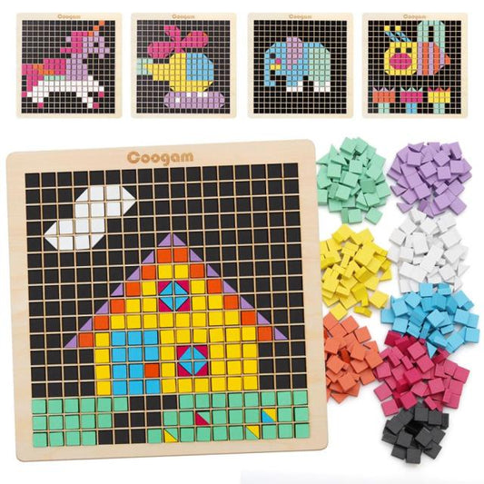 Coogam Wooden Toys, 370PCS Shape Pattern Blocks with 8 Colors, Pixel Board Game STEM Montessori Toys Gift for Kid Toddler