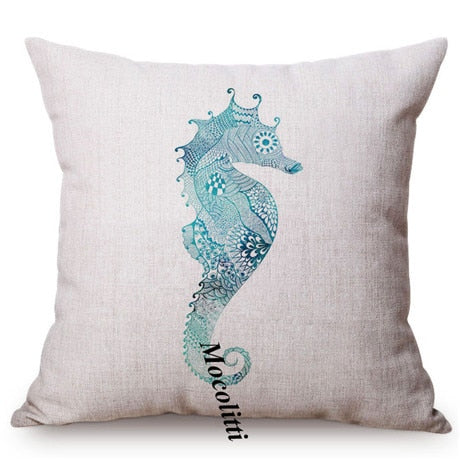 Blue Ocean Animal Sea Turtle Conch Watercolor Decorative Sofa Throw Pillow Cover Lobster Sea Horse Shell Pattern Cushion Cover