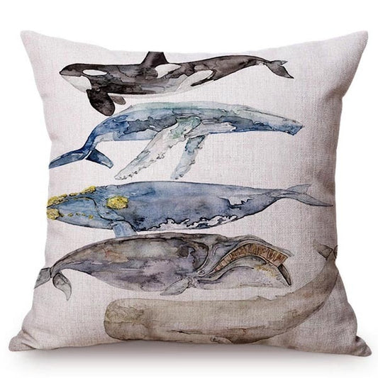 Blue Whale Style Ocean Animal Cushion Cover Water Color Painted Girls and Whale Dolphin Fairy Tales Decoration Sofa Pillow Cover