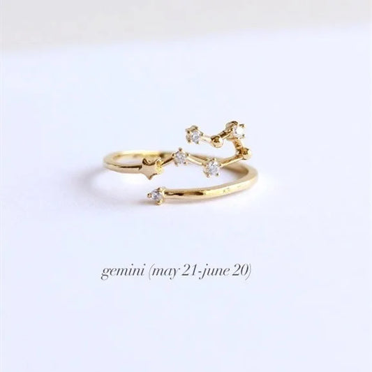 Crystal 12 Constellation Justable Rings For Women Cancer Leo Virgo Libra Sign Finger Ring Zodiac Star Jewelry Wedding Accessory
