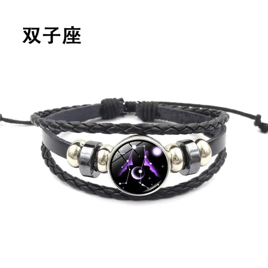 12 Zodiac Signs Constellation Charm Bracelet Men Women Fashion Multilayer Weave leather Bracelet & Bangle Birthday Gifts-1