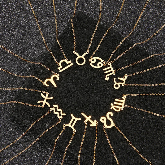 Hot Sale12 Zodiac Letter Constellations Chain Necklace For Women Men Aries Virgo Libra Scorpio Capricorn Aquarius Birthday Gift