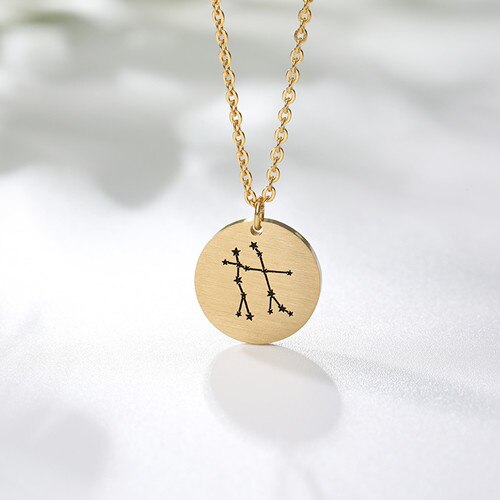 Round Coin Pendant Zodiac Sign Stainless Steel Minimalism Jewelry For Women Girl Aquarius Pisces Sagittarius Necklaces BFF