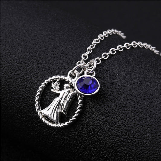 2019 New Fashion Galaxy Zodiac Signs Moon Pendants Blue Astrology Sign Horoscope Zodiac Signs Jewelry Glass Dome Necklace