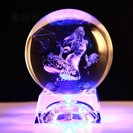 Clear 3D Zodiac Sign Star Crystal Ball Laser Engraved Glass Sphere Home Decor Birthday Gift Ornament