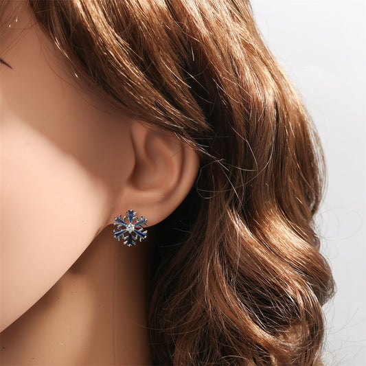 Snowflake Stud Earrings CZ Cubic Zirconia Blue White Pink Purple Christmas Holidays Decorations Gifts for Women Jewelry WE03