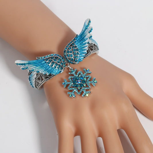 Snowflake Wing Bangle Bracelet Blue White Christmas Holidays Ornaments Gifts for Women Silver Color Crystal Fashion Jewelry