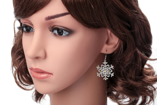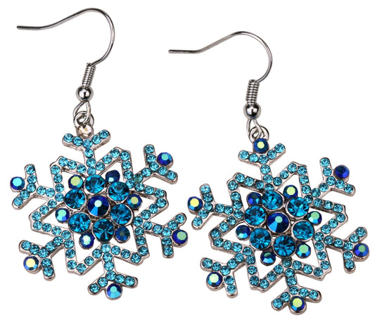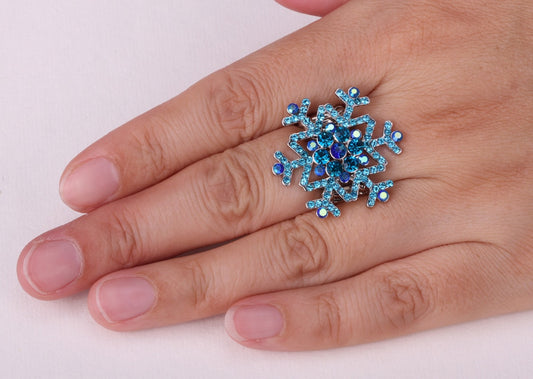 Snowflake Earrings Ring Sets Blue White Christmas Holidays Decorations Ornaments Gifts for Women Girls Crystal Fashion Jewelry