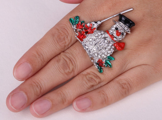 Snowman stretch ring holiday christmas Xmas gifts for women girls cute fashion jewelry W/ crystal wholesale dropshipping