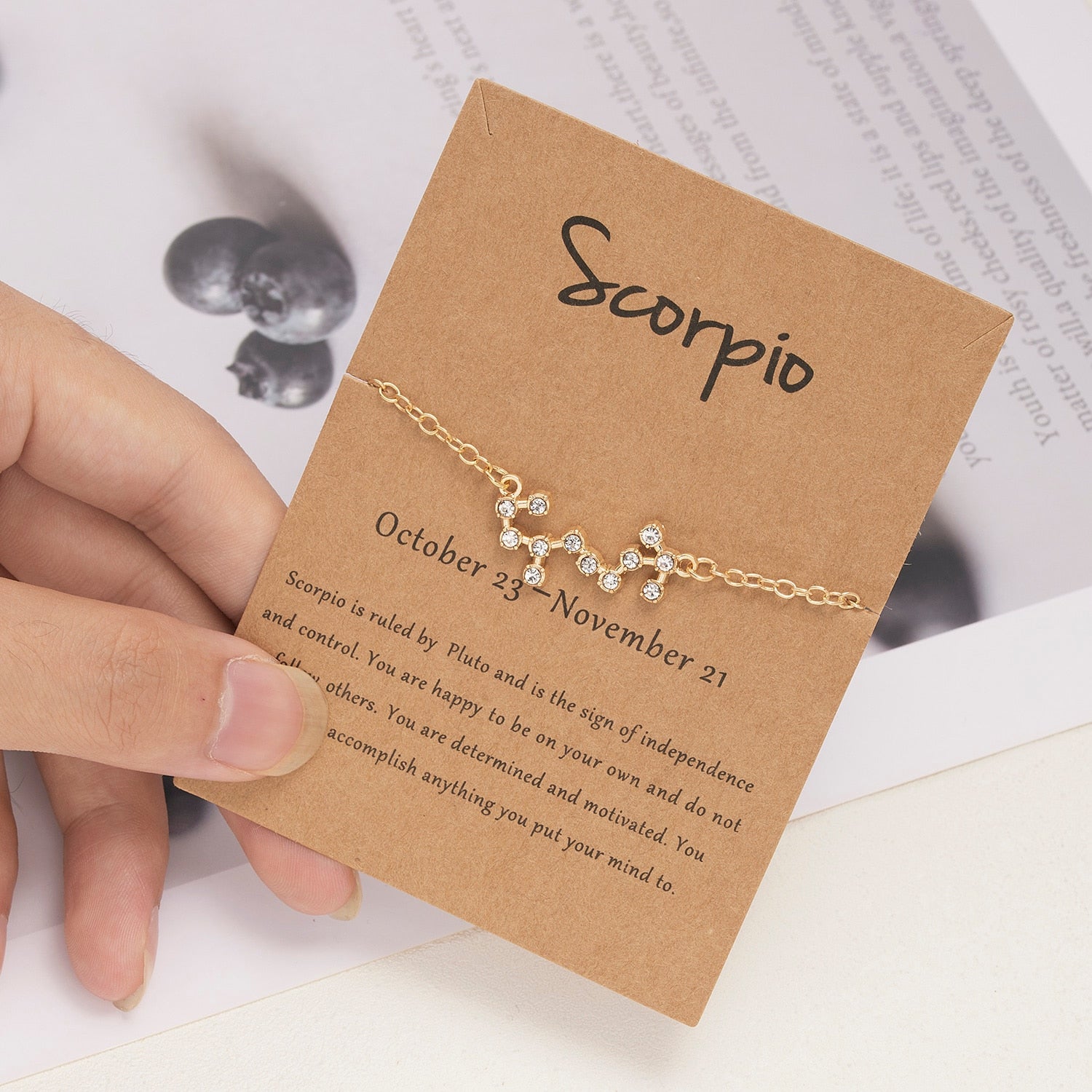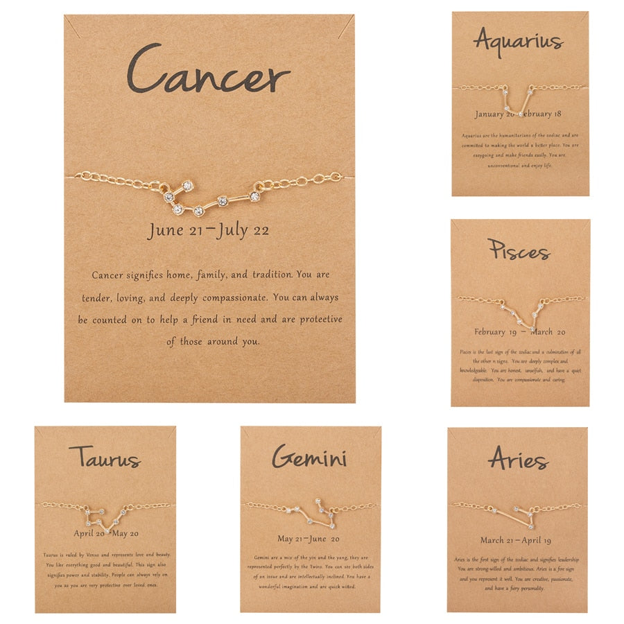12 Constellation Bracelet Crystal Charm Chain Bracelets for Women Zodiac Sign Libra Aries Wish Card Birthday Jewelry Gift