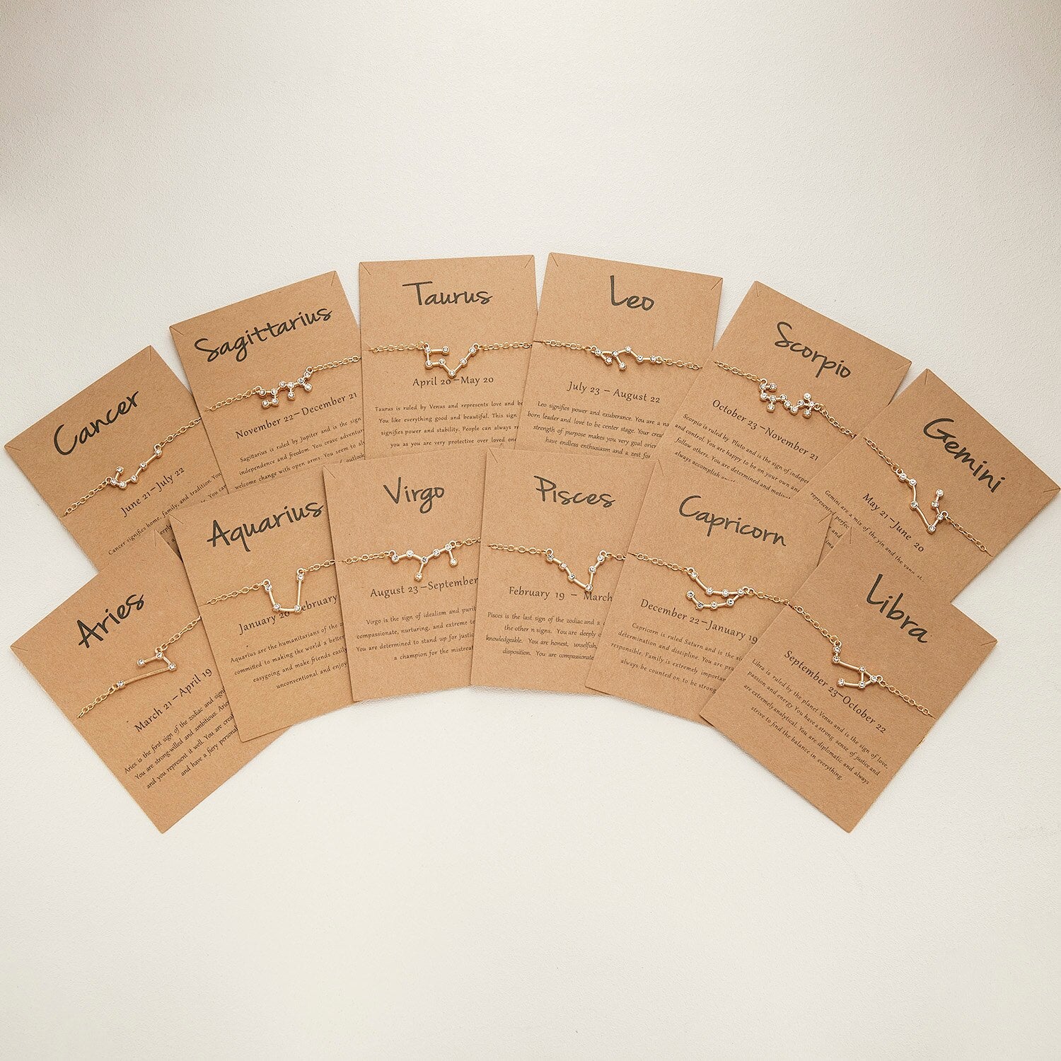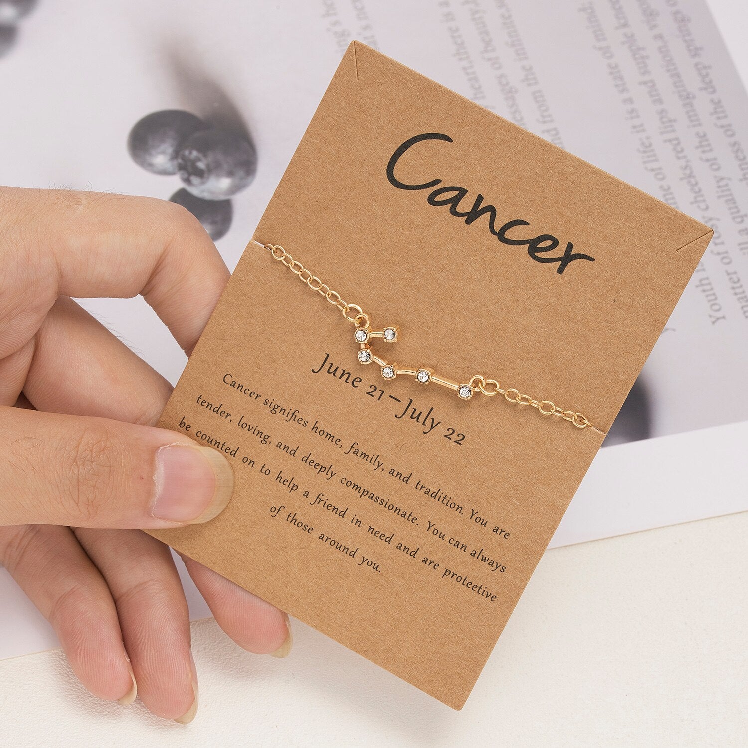 12 Constellation Bracelet Crystal Charm Chain Bracelets for Women Zodiac Sign Libra Aries Wish Card Birthday Jewelry Gift