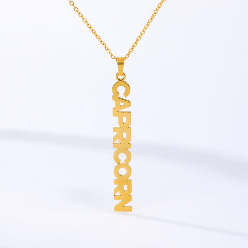 12 Constellation Letter Necklace Stainless Steel Star Zodiac Sign Letter Pendants Charm Chain Choker For Women Girl Jewelry
