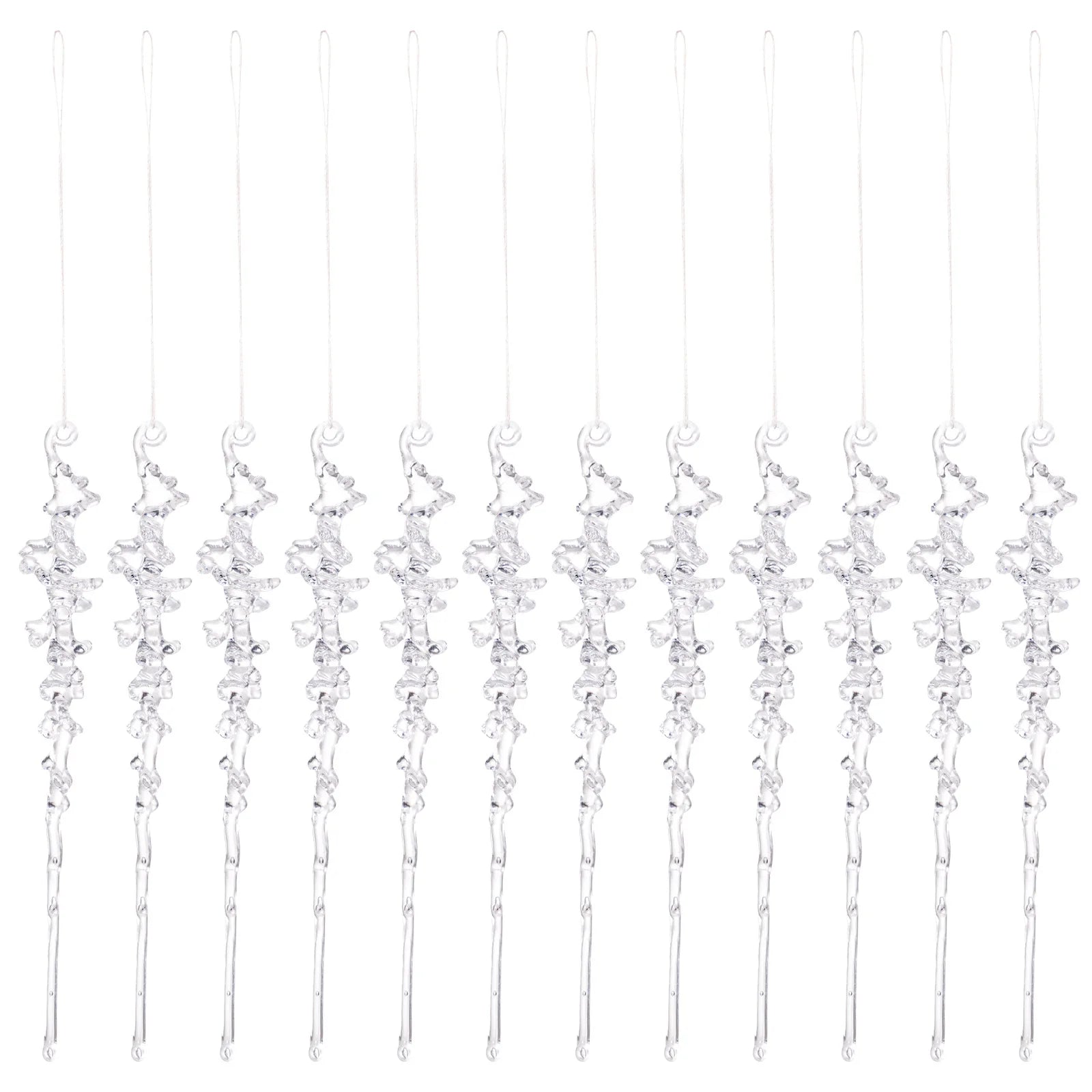 12 Pieces of Crystal Acrylic Spiral Ice Strip Decorations for Christmas Trees, Winter Fairyland Chandeliers and Other Items