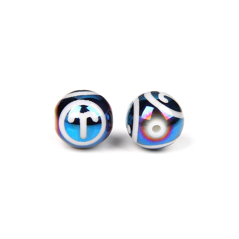 12 Zodiac Signs Beads Charms Blue 10mm Constellation Round Crystal Beads for Jewelry Making Handmade DIY Accessories Bracelets
