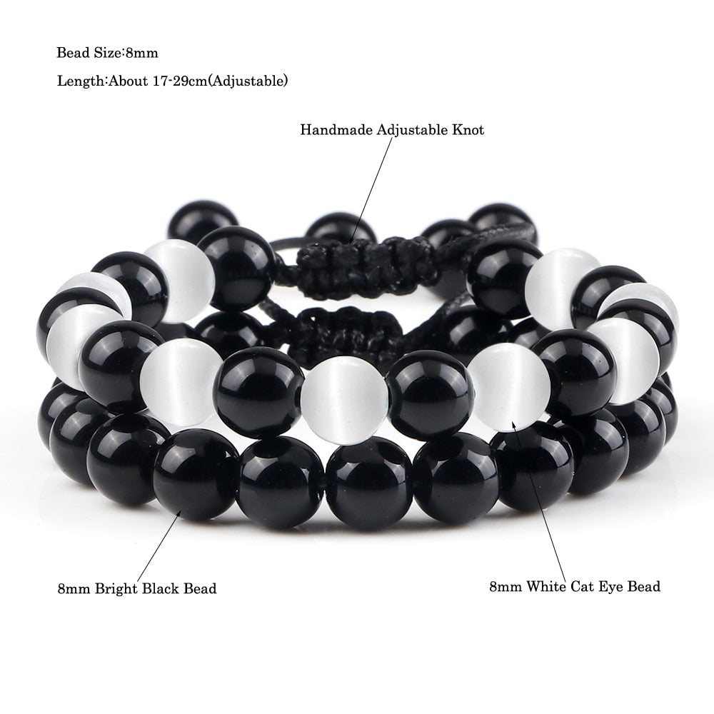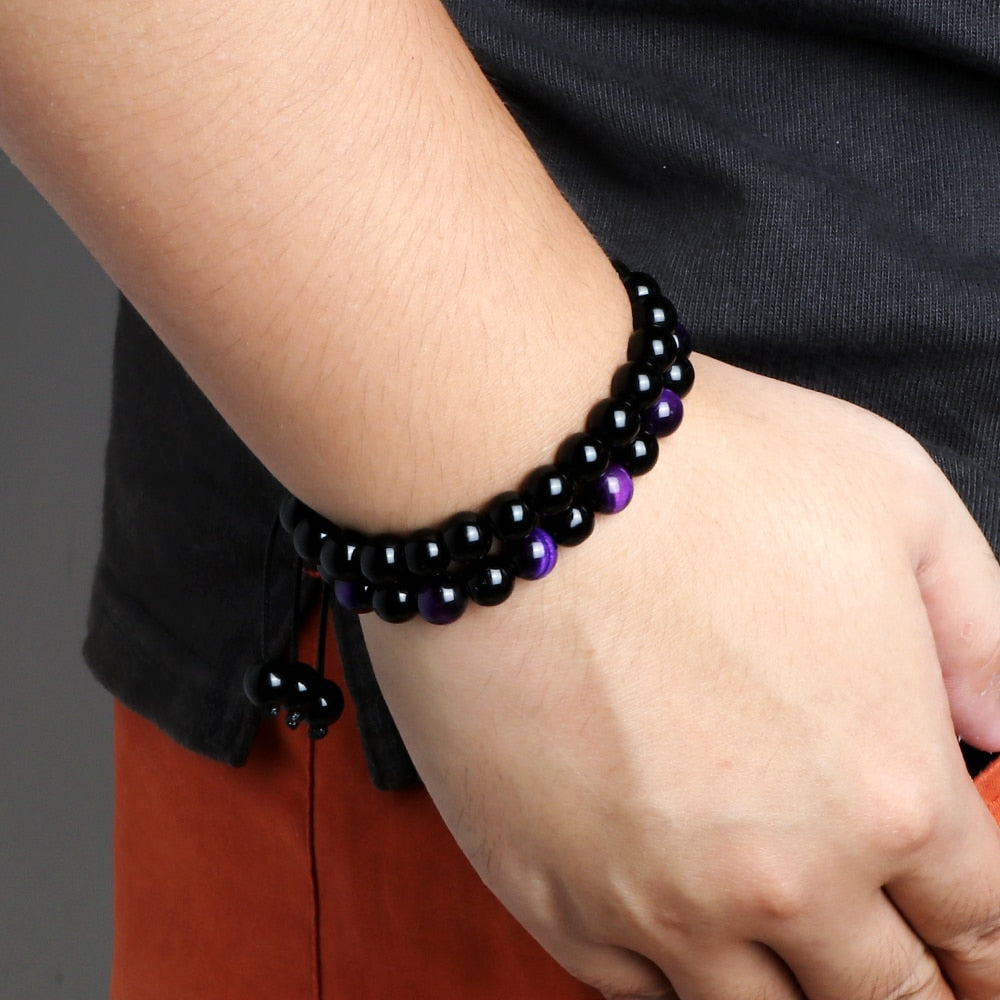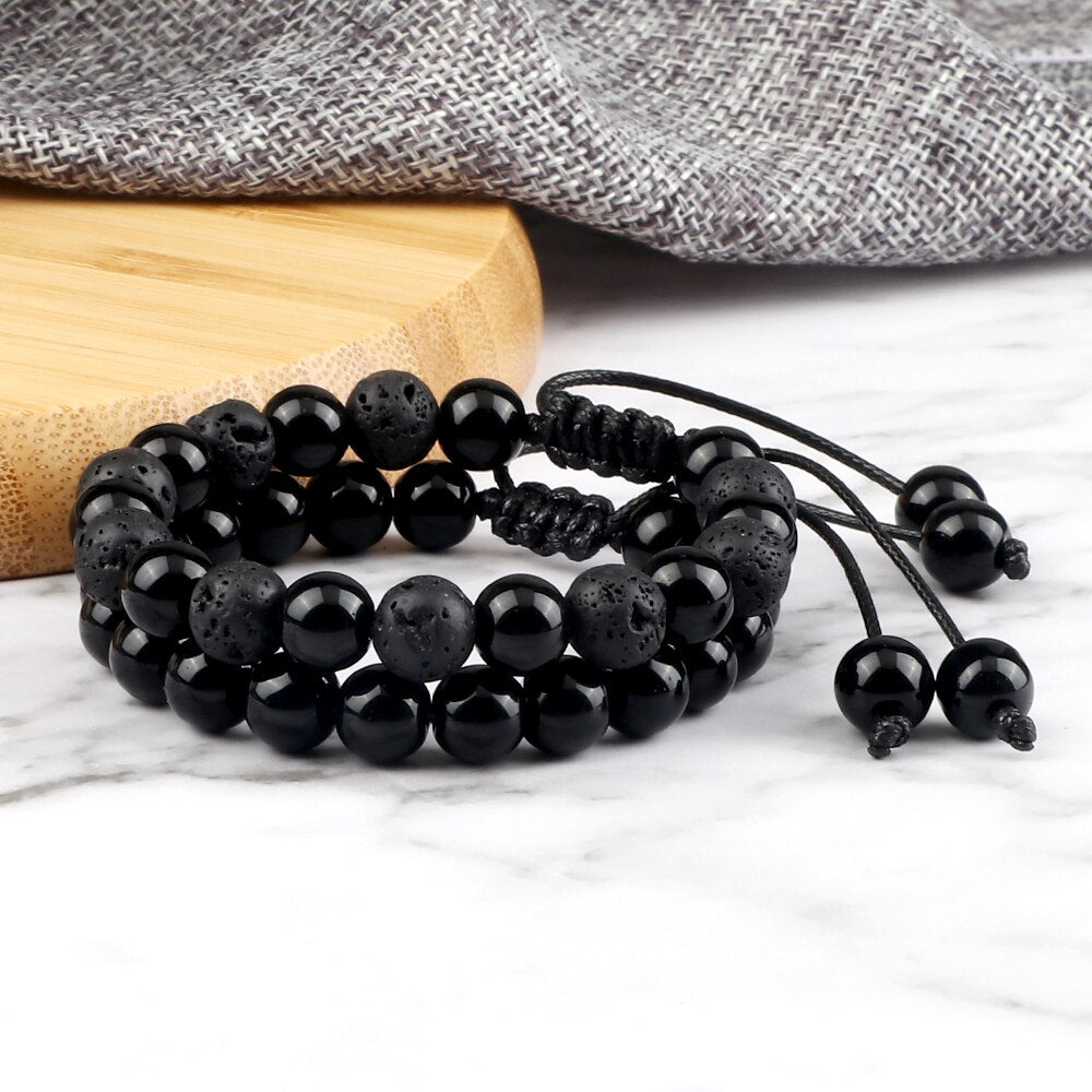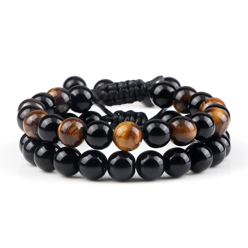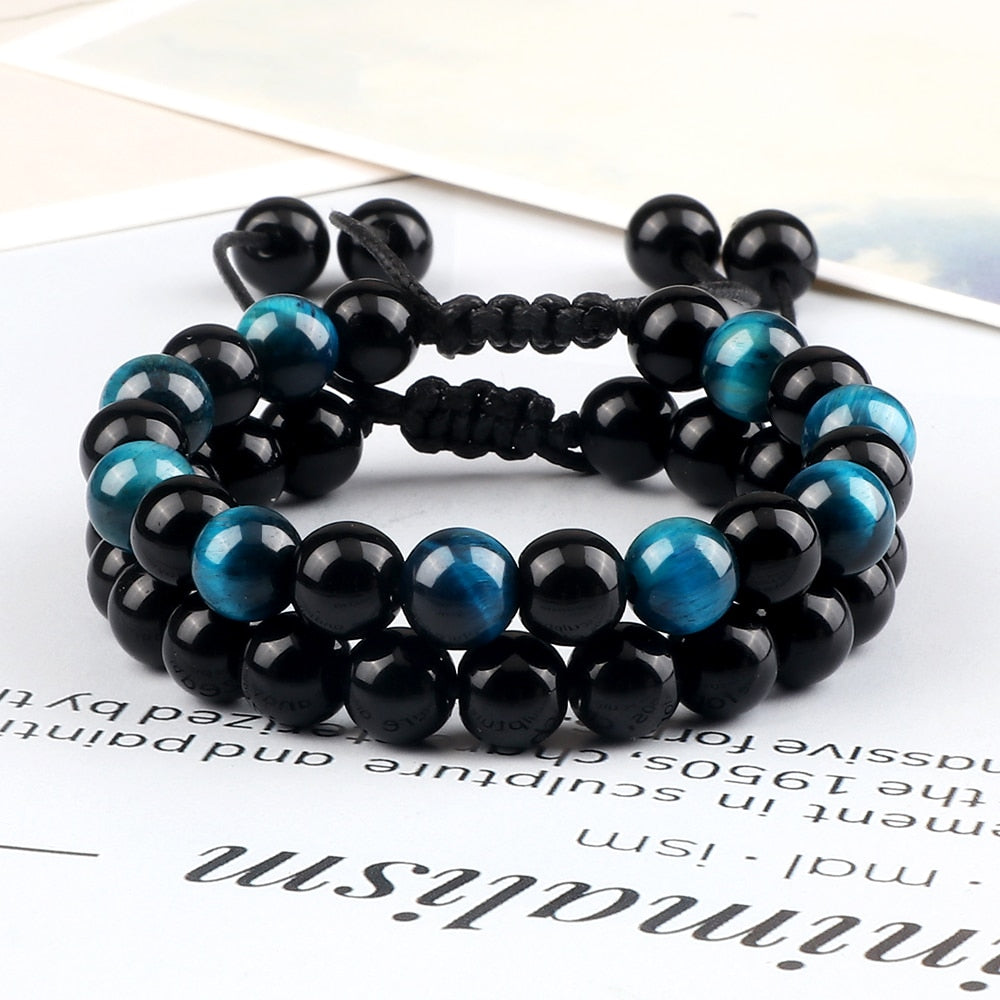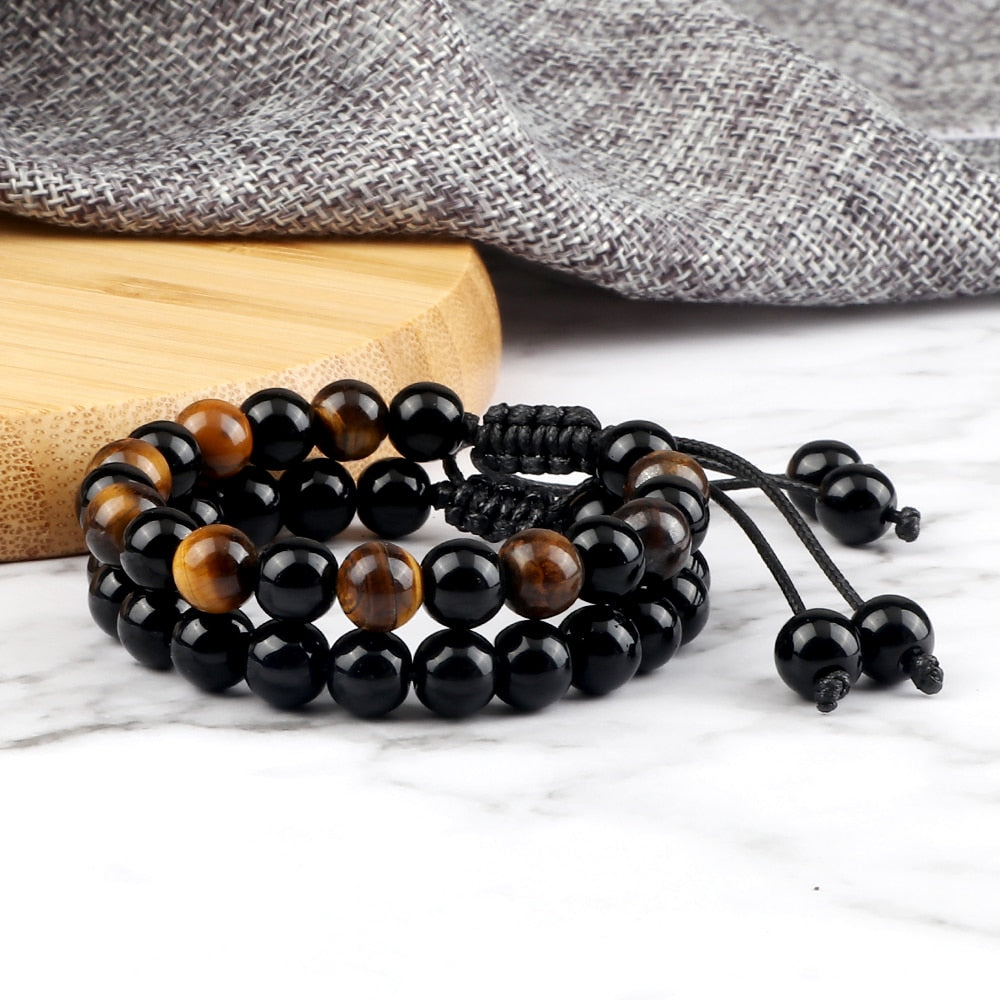 2pcs Men Shiny Black Natural Stone Beaded Bracelets Multicolor Tiger Eye Stone Obsidian Onyx Beads Bracelets Women Yoga Jewelry