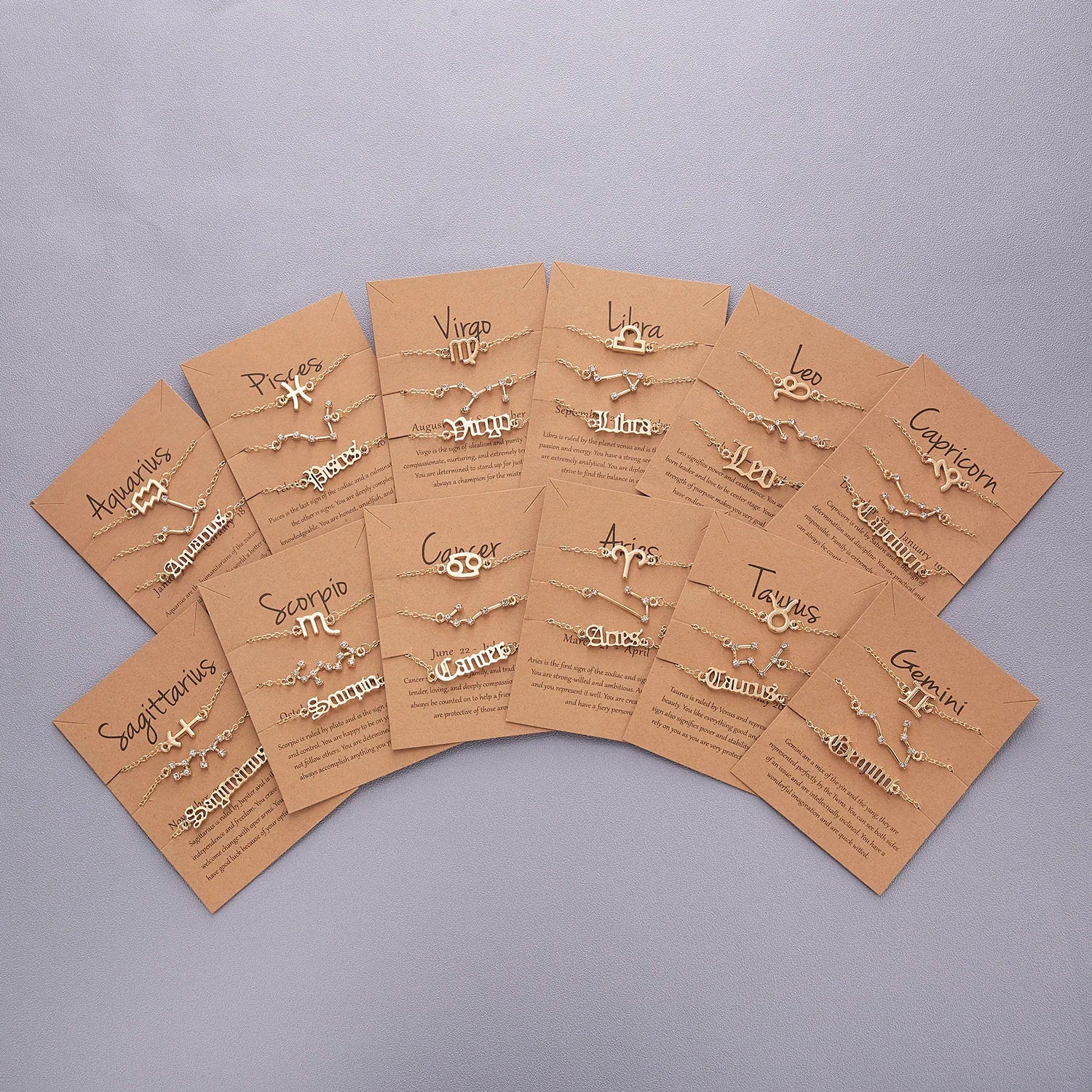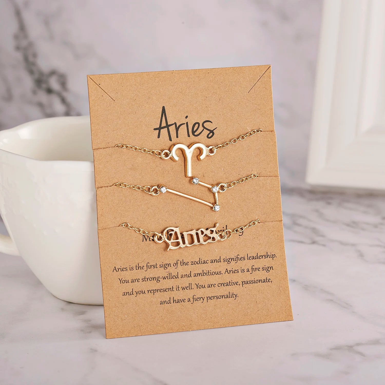 3 PCS/Set Zodiac Sign Chain Bracelet for Women Couple 12 Constellation Gold Color Star Rhinestone Birthday Jewelry Aries Gifts