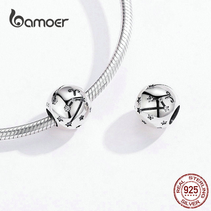 BAMOER Vintage 925 Sterling Silver Twelve Constellations Star Sign Zodiac Beads Charms fit Charm Bracelet Neckalce DIY