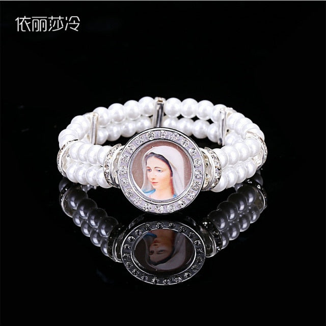 Catholic Beaded Pearl Crystal Rosary Beads Beaded Jesus Charm Pearl Bracelet Ladies Jewelry Bracelet Gift. Icon Random