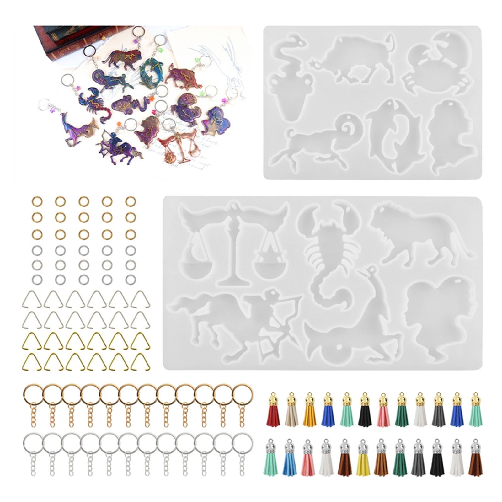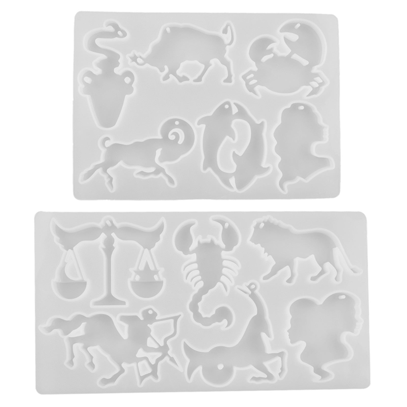 DIY Crystal Epoxy Resin Mold Zodiac Animal Mirror Keychain Pendant Silicone Mould