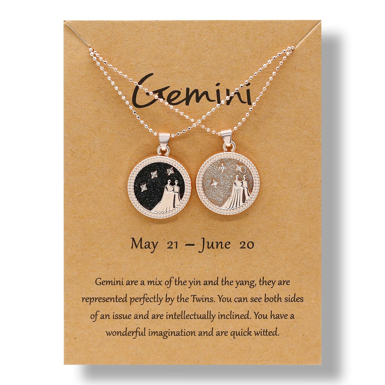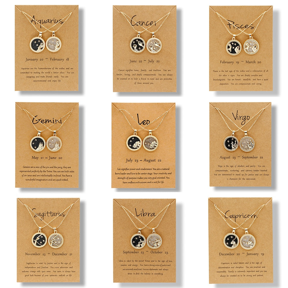 Fashion 12 Constellation Necklace For Women 2 PCS/Set Zodiac Sign Coin Chain Pendant Choker Birthday Couple Jewelry Charm Gifts